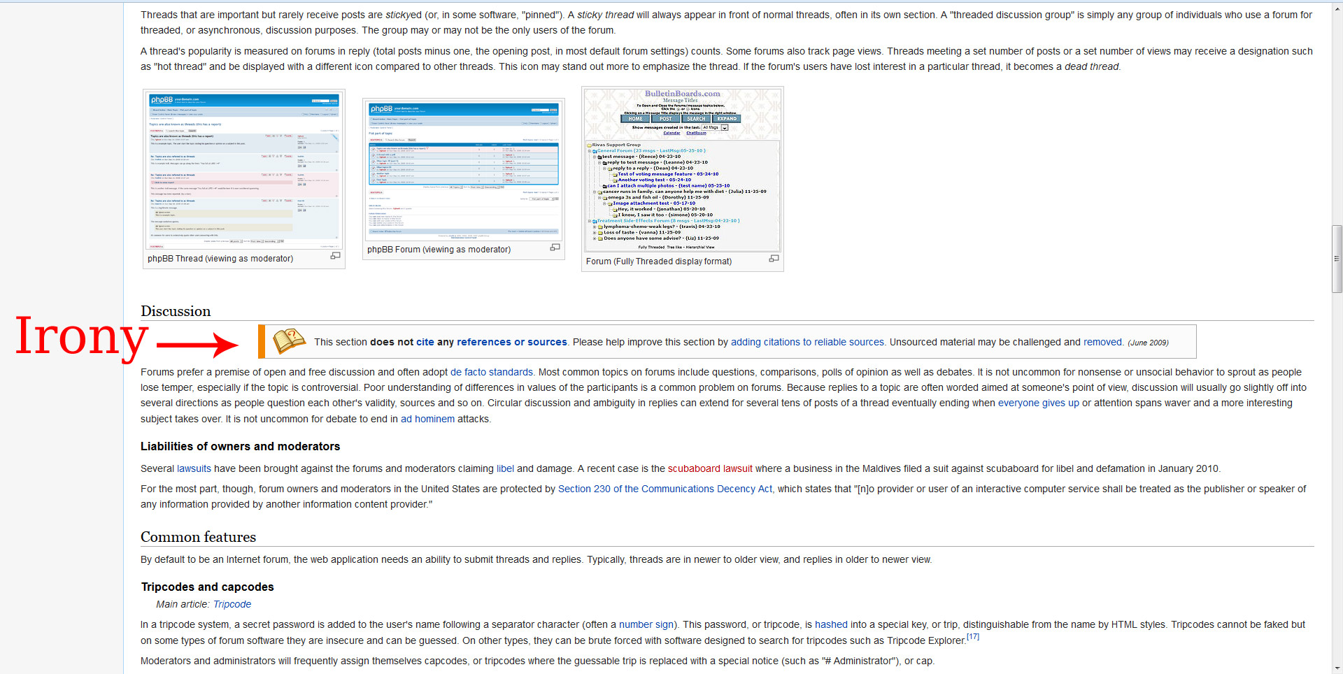 This thread is dedicated to the ironic things we see in life or on the Internet. Attached is a goody. I was on Wikipedia and somehow ended up on an article about online forums and discussion boards, when I ran across this little gem of irony. Feel free to post your finds.